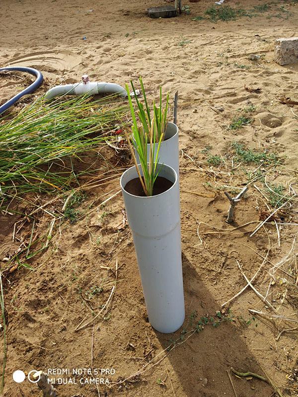 This experience really highlighted for us the practical challenges of growing vetiver in confined spaces like pipes, compared to open field cultivation.