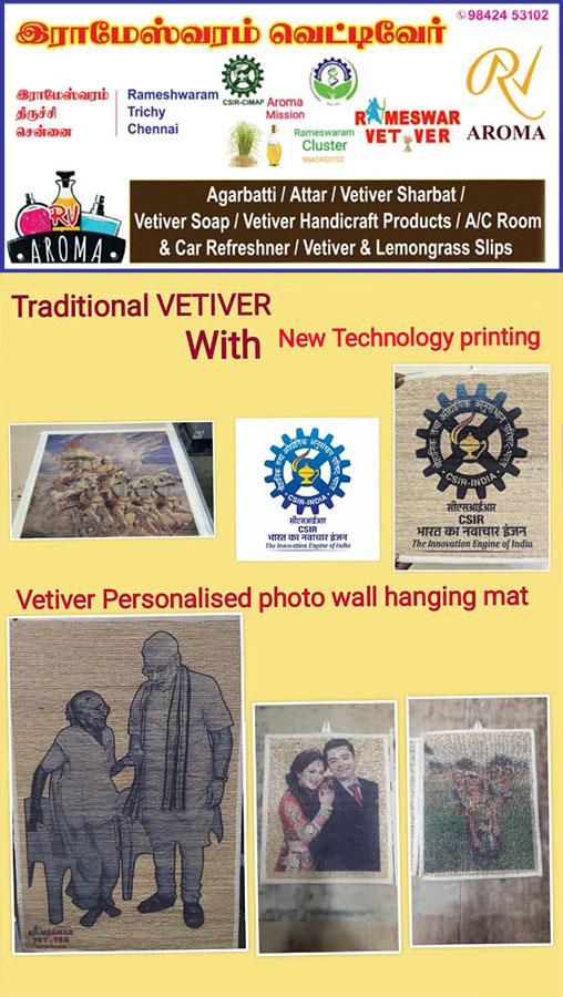 Local innovator Anandan from Pondicherry exhibited vetiver-based bags, jackets, chappals, and more. Notably, a Vetiver T-shirt developed by him was officially launched at the event by the CIMAP Director.